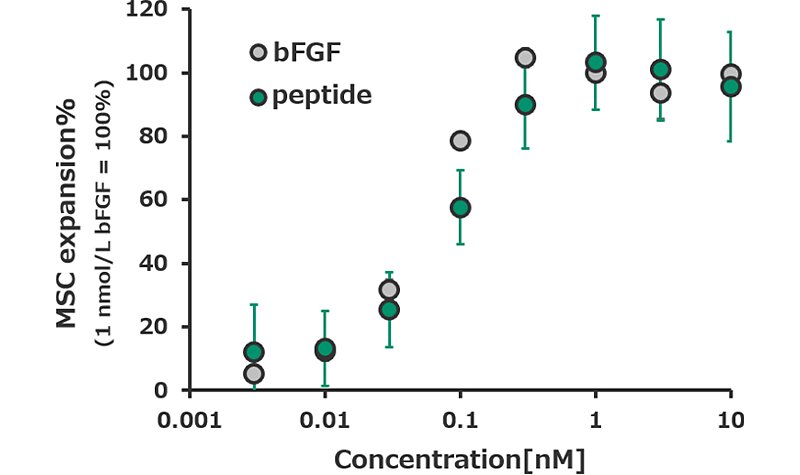 - Optimized peptide showed same cell growth rate with the natural protein (bFGF) in MSC (Mesenchymal Stem Cell).