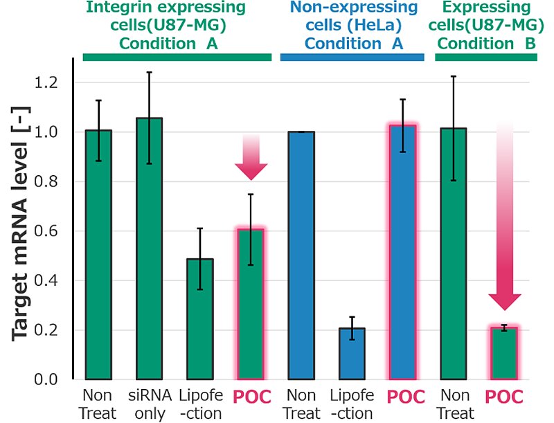 - siRNAs were conjugated to the integrin αvβ3-binding peptide. With this Peptide Oligonucleotide Conjugates, cell-selective target gene knockdown was achieved.