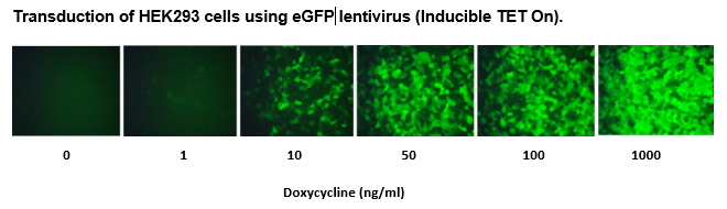 - Applications: • Ideal as a positive control for transduction with a tetracycline-inducible expression system; useful for transduction optimization. • Generation of a TET inducible stable cell line expressing eGFP with G418 selection.