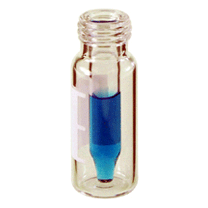 Vial & Cap Kit Includes 100 EA 300ul, Fused Insert with a wide tip, Screw Top, Clear Autosampler Vials with Write on Patch and fill lines and 100 EA matching Screw Caps with Tan Silicone Rubber / White PTFE, Pre-Slit Septa bonded in the Blue Caps. AQ Brand Easy Purchase Pack. 1/PK.