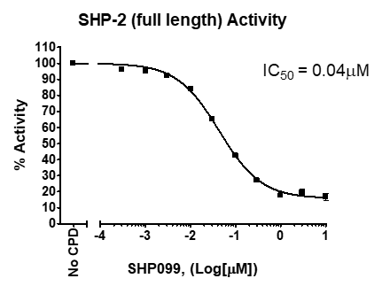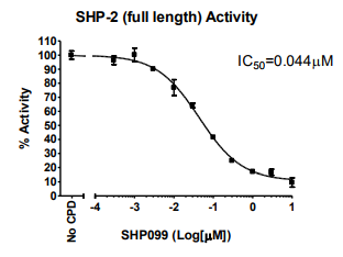 - Description: The Homogeneous full length SHP-2 Assay Kit is a complete assay system designed to measure full length SHP-2 activity for screening and profiling applications. Using this kit, only two simple steps on a microtiter plate are needed to analyze the full length SHP-2 activity level. At the first step, the SHP-2 enzyme is preincubated with SHP-2 Activating Peptide to activate the enzyme. At the second step, the fluorogenic substrate, DiFMUP, is added in the mixture and the enzymatic activity releases DiFMU fluorophore that can then be measured using a fluorescence reader.