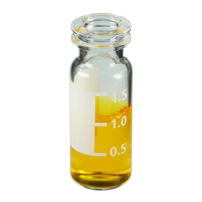 Vial & Cap Kit includes 100 EA 2ml, Snap Top, Clear Autosampler Vials with Write-On Patch and fill lines and 100 EA matching Snap Caps with Silicone Rubber / PTFE, ultra-pure Septa, fitted in the Light Blue Caps. BASIK Brand Easy Purchase Pack. 1/PK.